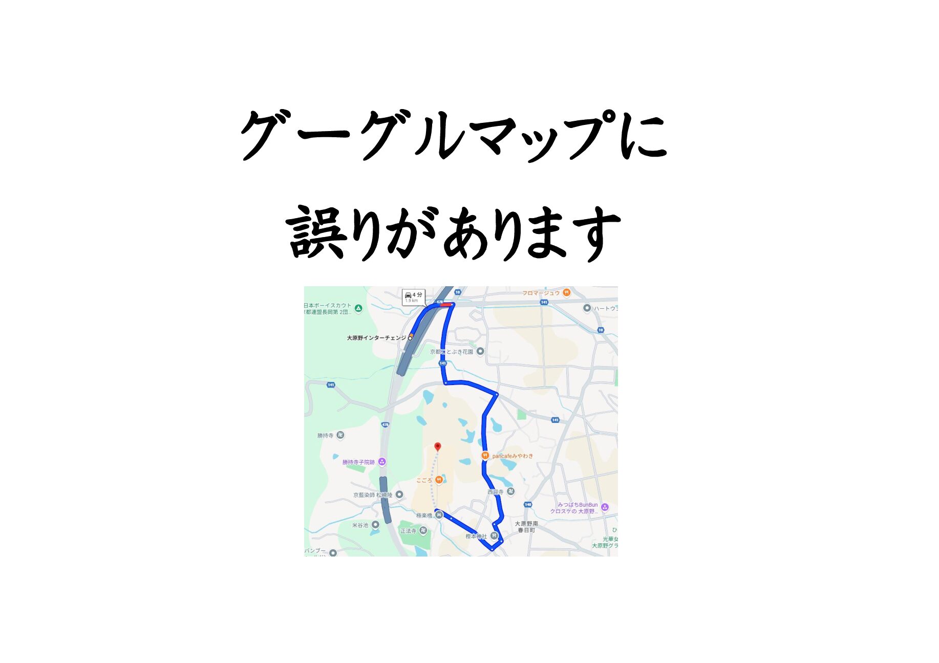 グーグルマップに表示される大原野インターから大原野神社への経路は、大変危険です。
